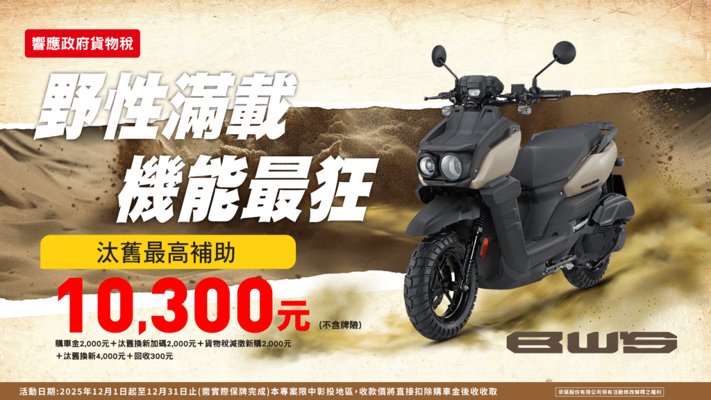 為了能實現車輛穩定性,本次導入了不對稱車架及拉力桿,讓BW’S剛性較前一代提升了25%。