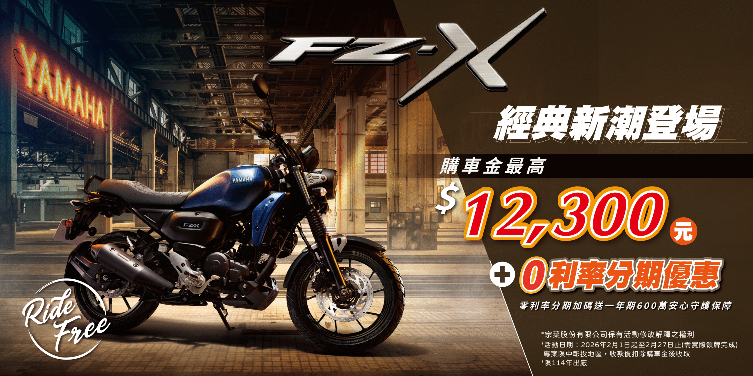 FZ-X購車金8,000元+分期0利率(限114年出廠)